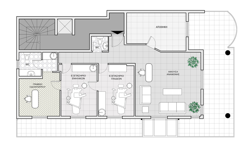 Το οδοντοιατρείο χωροθετείται στη Θέρμη Θεσσαλονίκης και αδειοδοτήθηκε από τον ιατρικό σύλλογο. Κατόπιν αρχιτεκτονικής μελέτης, διαμορφώθηκε η κάτοψη του οδοντοιατρείου, ώστε να δημιουργηθούν οι απαραίτητοι για τη λειτουργία του χώροι. Για την ολόκληρωση των εργασιών εκδόθηκε αντίστοιχη άδεια για εσωτερικές διαρρυθμίσεις.