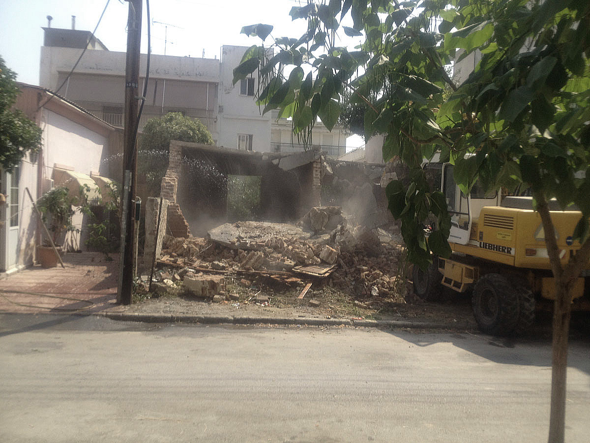 Το εν λόγω ακίνητο μεταβιβάστηκε και ο πρώτος ιδιοκτήτης είχε την υποχρέωση από τα συμβόλαια να καταδαφίσει και να παραδώσει το οικόπεδο στους νέους ιδιοκτήτες ''καθαρο''. Εκδόθηκε οικοδομική άδεια και έπειτα ακολούθησε η κατεδάφιση του κτηρίου όπως και η συλλογή και απόθεση των μπαζών σε καθορισμένους χώρους.