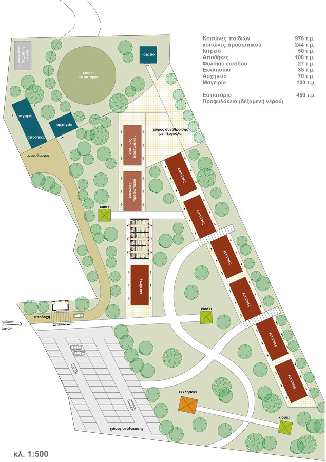Πρόκειται για μια πρόταση παιδικών κατασκηνώσεων σε ορεινό χώρο. Η μελέτη έγινε για λογαριασμό μίας εταιρείας κατασκευής ξύλινων κατοικιών και όλα τα κτίρια είναι κατασκευασμένα από ξύλο. Στους χώρους της κατασκηνώσεως προβλέφθηκαν κοιτώνες , χώροι υγιεινής , εστιατόρια ,κτίριο διοικήσεων , ιατρεία ,γήπεδα , κτίριο εισόδου και άλλα κτίρια που είναι απαραίτητα για την λειτουργεία της κατασκήνωσης.