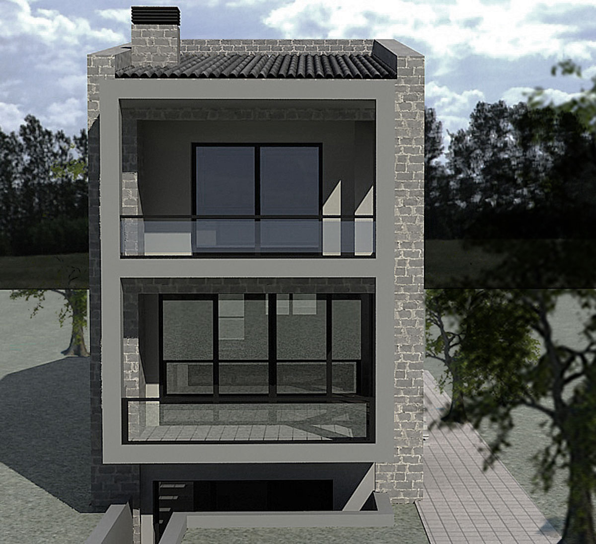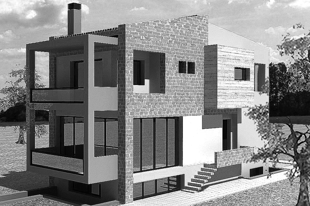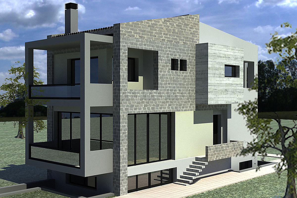 Πρόκειται για διώροφη μονοκατοικία με υπόγειο, μοντέρνας αρχιτεκτονικής, που τοποθετείται στην περιοχή της Θέρμης. Η σύνδεση μεταξύ των επιπέδων, που εξυπηρετούν διαφορετικές λειτουργίες, γίνεται από το εσωτερικό κλιμακοστάσιο. Στο πρώτο επίπεδο εντάσσονται οι χώροι διημέρευσης, με μεγάλα ανοίγματα σε όλες τις όψεις, εξασφαλίζοντας στην κατοικία εξαιρετικές συνθήκες διαβίωσης. Στο δεύτερο επίπεδο βρίσκονται τα τρία άνετα υπνοδωμάτια με εξώστες. Στο υπόγειο υπάρχουν αποθηκευτικοί χώροι και οι χώροι για τις ηλεκτρομηχανολογικές εγκαταστάσεις.