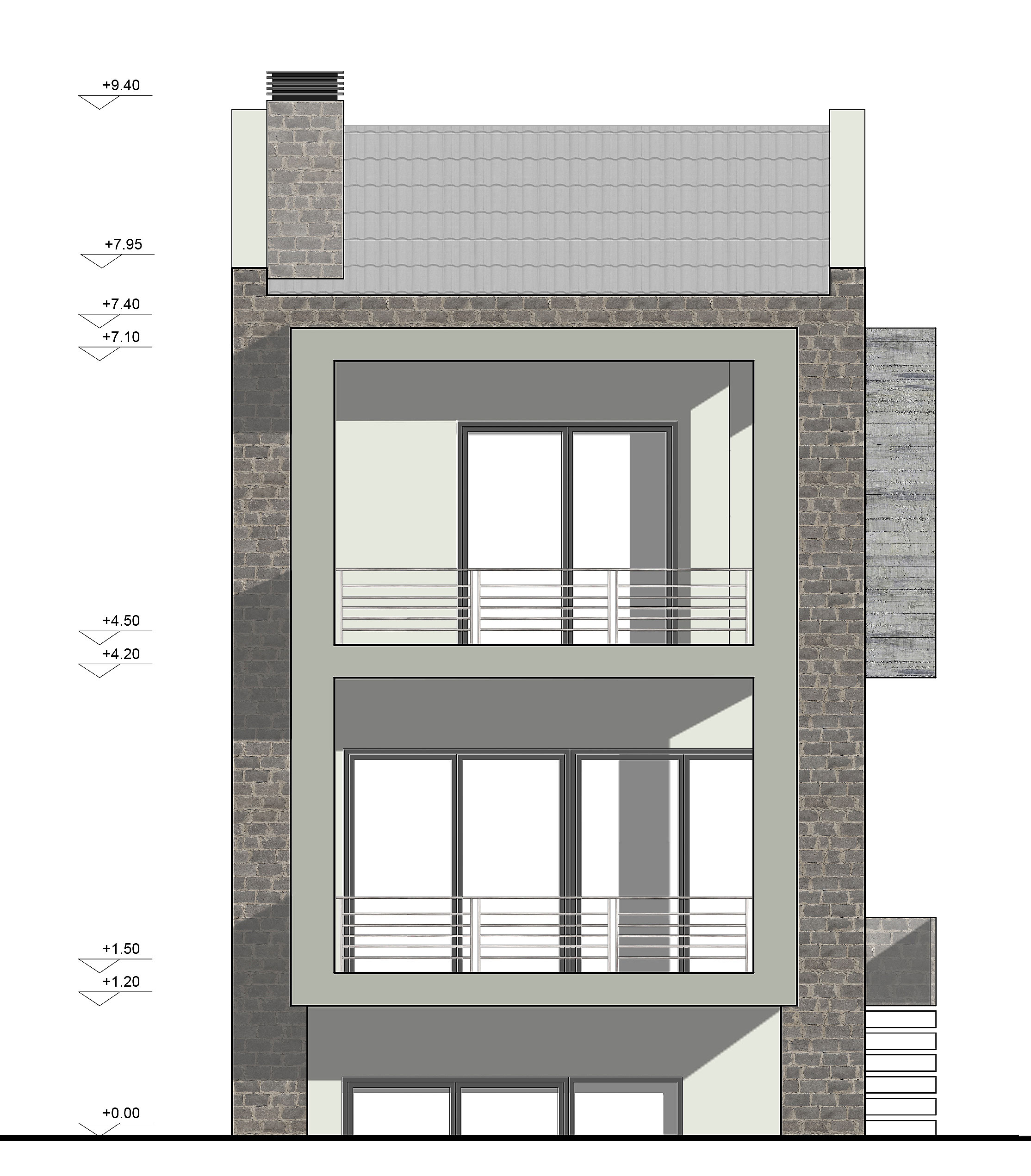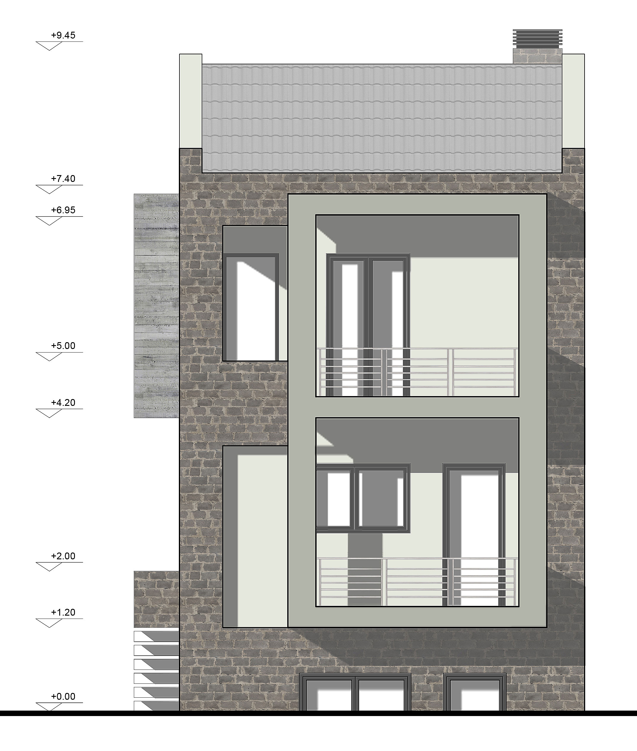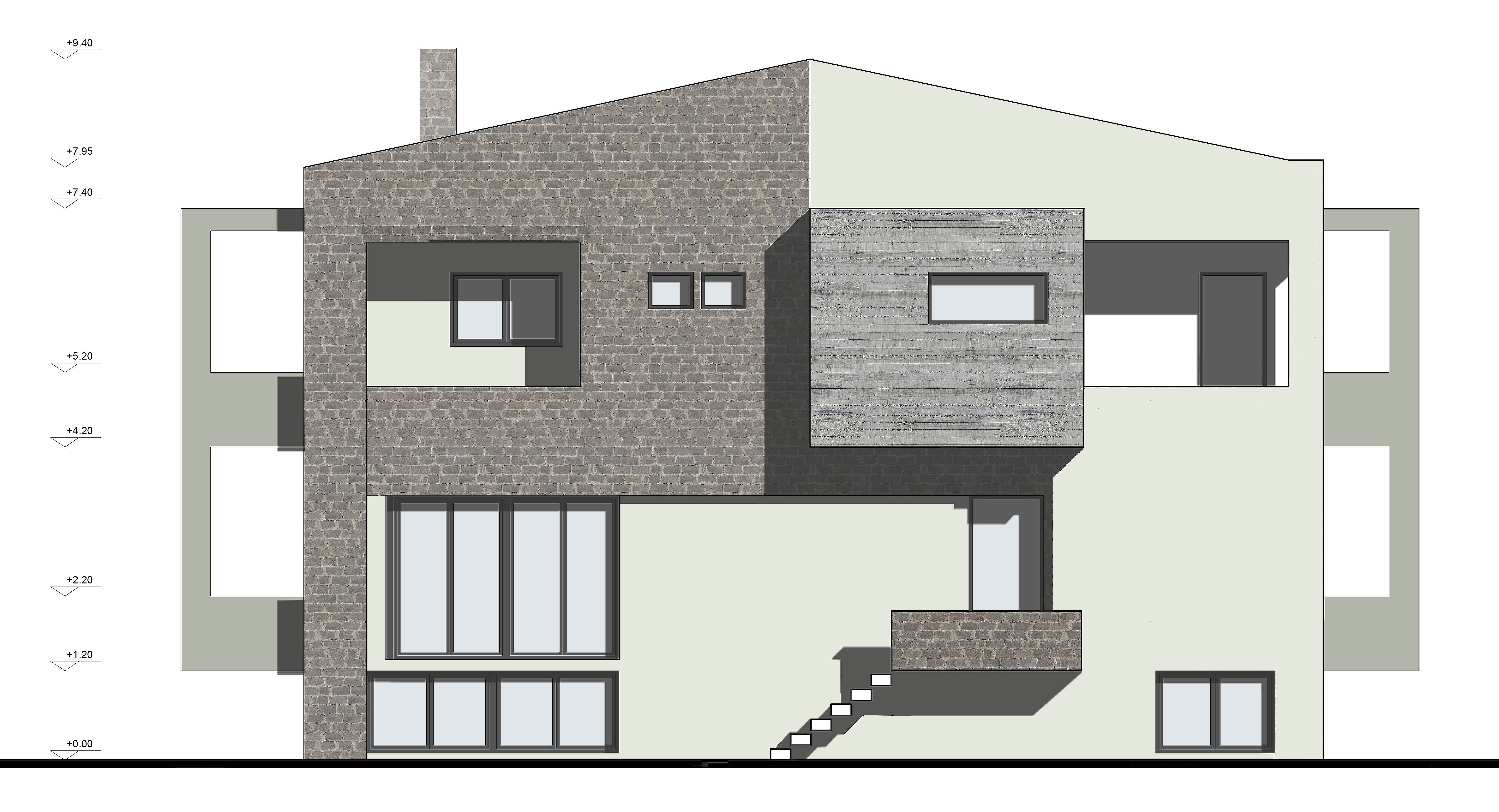 Πρόκειται για διώροφη μονοκατοικία με υπόγειο, μοντέρνας αρχιτεκτονικής, που τοποθετείται στην περιοχή της Θέρμης. Η σύνδεση μεταξύ των επιπέδων, που εξυπηρετούν διαφορετικές λειτουργίες, γίνεται από το εσωτερικό κλιμακοστάσιο. Στο πρώτο επίπεδο εντάσσονται οι χώροι διημέρευσης, με μεγάλα ανοίγματα σε όλες τις όψεις, εξασφαλίζοντας στην κατοικία εξαιρετικές συνθήκες διαβίωσης. Στο δεύτερο επίπεδο βρίσκονται τα τρία άνετα υπνοδωμάτια με εξώστες. Στο υπόγειο υπάρχουν αποθηκευτικοί χώροι και οι χώροι για τις ηλεκτρομηχανολογικές εγκαταστάσεις.