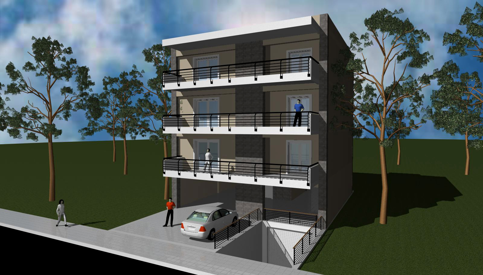 Πρόκειται για μία τριώροφη οικοδομή επί πυλωτής με υπόγειο, στέγη και περίφραξη αυλείου χώρου. Σε κάθε όροφο υπάρχει ένα και μοναδικό διαμέρισμα όπου αναπτύσσονται τρία δωμάτια , σαλοκουζίνα και μπάνιο. Στην πυλωτή και στο υπόγειο υπάρχουν διαμορφωμένοι χώροι στάθμευσης και αποθήκες για τα διαμερίσματα.